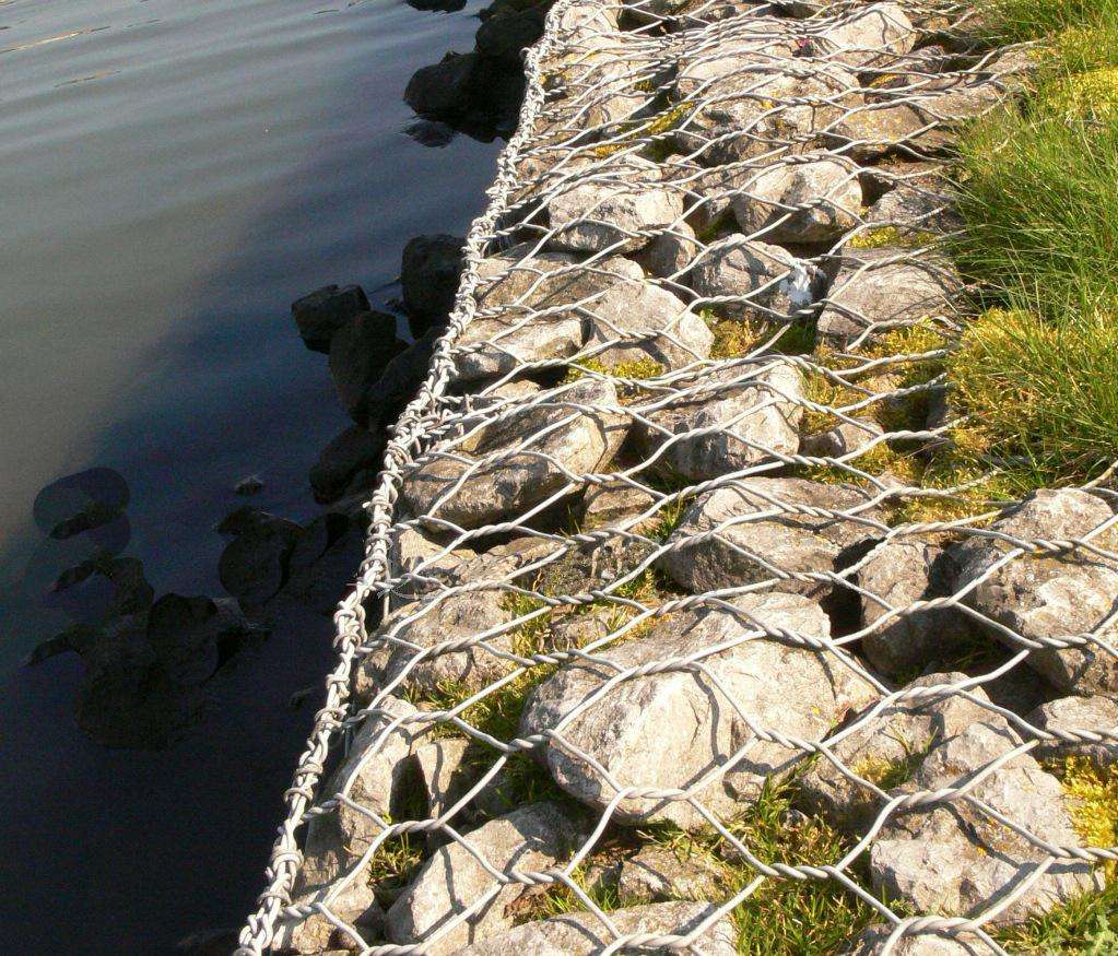 雷諾護墊也叫石籠護墊,格賓護墊,是指由機編雙絞合六邊形金屬網(wǎng)面構(gòu)成的厚度遠小于長度和寬度的墊形工程構(gòu)件。雷諾護墊中裝入塊石等填充料后連接成一體,成為主要用于水利堤防、岸坡、海曼等的防沖刷結(jié)構(gòu),具有柔性、對地基適應(yīng)性的優(yōu)點。