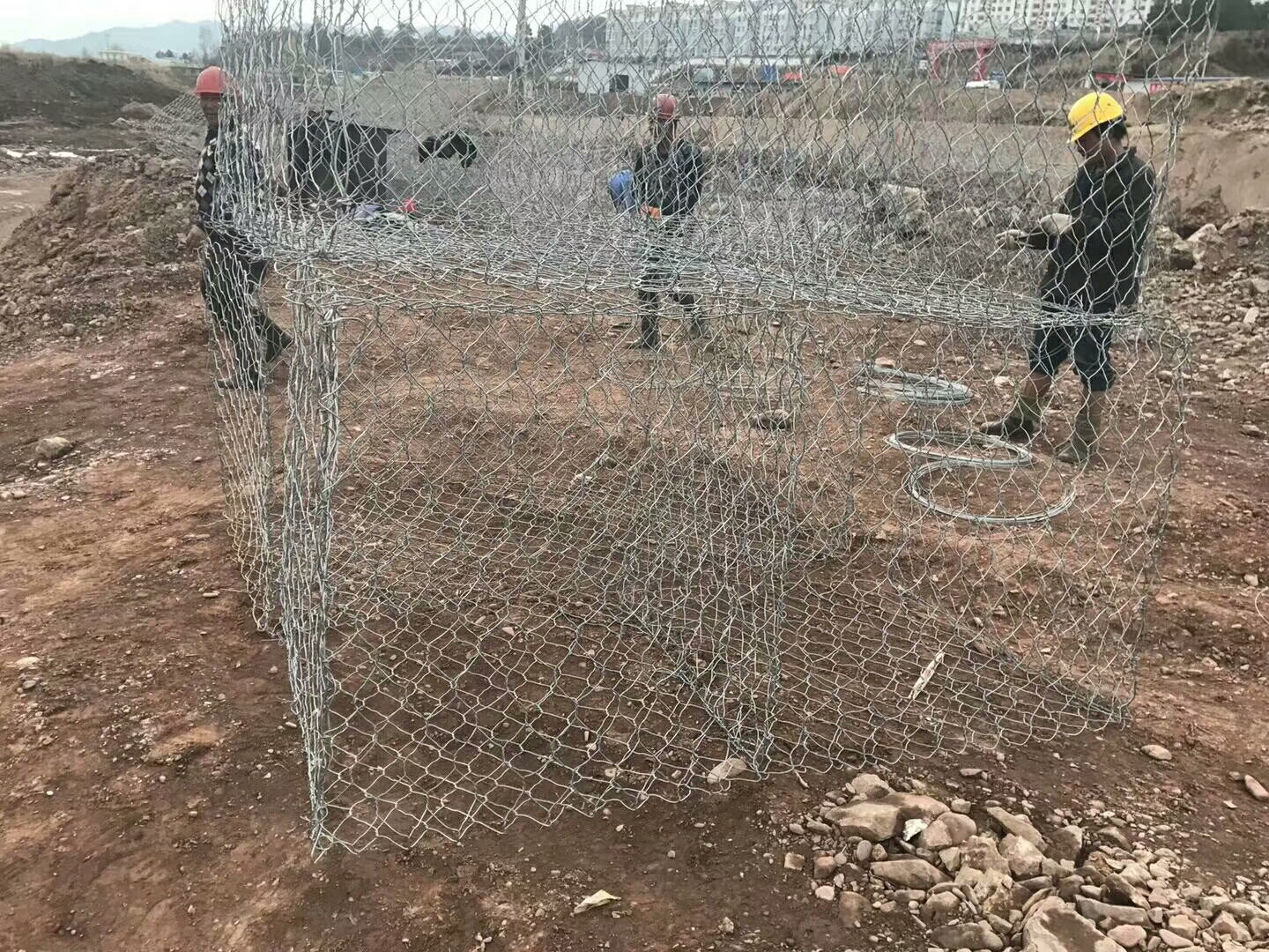 網(wǎng)籠施工主要程序是立架→裝料→砌平→封口等。