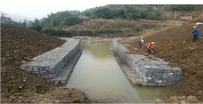 7)加蓋后的格賓石籠外觀應(yīng)裝填飽滿,表面平整,線條直順,曲線圓滑。