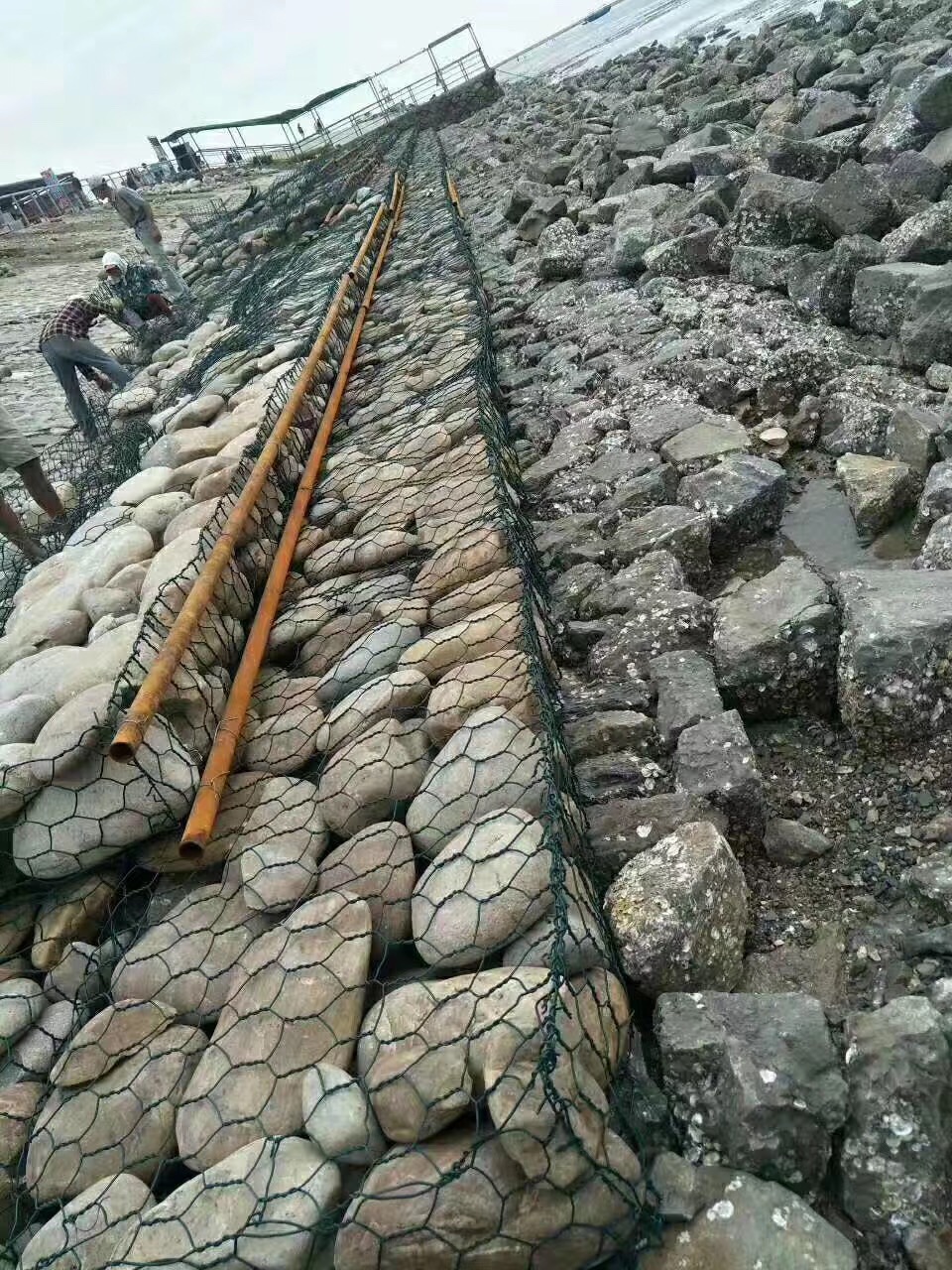雷諾護(hù)墊是指由機(jī)編雙絞合六邊形金屬網(wǎng)面構(gòu)成的厚度遠(yuǎn)小于長度和寬度的墊形工程構(gòu)件,其中裝入塊石等填充料后連接成一體,成為主要用于水利堤防、岸坡、海曼等的防 沖刷結(jié)構(gòu),具有柔性、對(duì)地基適應(yīng)性的優(yōu)點(diǎn)。