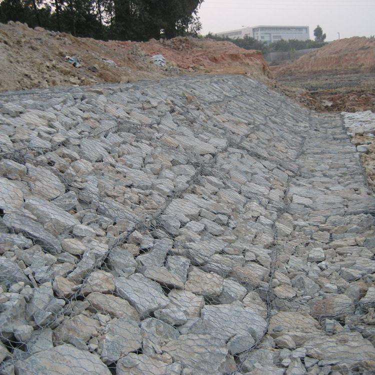雷諾護(hù)墊又名格賓墊雷諾護(hù)墊是以經(jīng)鍍覆表面防腐處理的低碳鋼絲,采用六邊形雙絞合工藝,用機(jī)器編織而成的鋼絲網(wǎng)面制成的墊狀工程防護(hù)構(gòu)件。墊中填以合乎要求的石塊,共同構(gòu)成岸坡護(hù)砌結(jié)構(gòu)。其結(jié)構(gòu)具有整體性,柔性,經(jīng)濟(jì)性及施工便捷等諸多優(yōu)點(diǎn),主要應(yīng)用于堤坡,岸坡坡面防沖刷護(hù)砌和河(渠)床底,坡腳等淘刷防護(hù)。雷諾護(hù)墊技術(shù)特點(diǎn):高強(qiáng)度,高柔韌性,抗腐蝕性,整體性優(yōu)良的壓載性能,良好的透水性和促淤性,施工便捷,經(jīng)濟(jì),環(huán)保。