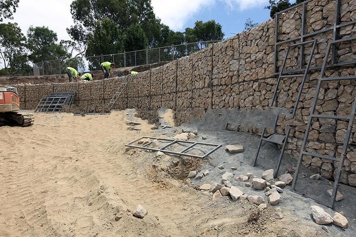 石籠網擋土墻,是石籠網籠子層疊堆砌的擋土建筑物。石籠網箱擋土墻的構件是在網箱內部填充大小比例相當的石塊,這樣就有一定的孔隙率,由于石塊之間的間隙,可以排出砌體后面的土壤和護坡下面土層的水,這樣就降低了水位,減少墻體后和坡下的地表水壓力,水及時排出降低了擋土墻被破壞的幾率,這樣擋土墻的壽命會大大的延長。同時墻體網箱是鐵絲網制作的籠子,能夠有一定的變形,況且,石塊與石塊之間,也可以滑動,所以擋土墻的變形能力也能夠緩沖突發(fā)的外力。