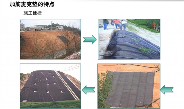 施工方便:加筋麥克墊可按設(shè)計(jì)意圖,工廠(chǎng)化生產(chǎn)制作出半成品,施工現(xiàn)場(chǎng)則按設(shè)計(jì)圖進(jìn)行組裝定型,操作簡(jiǎn)便、受氣候干擾小,且適宜于機(jī)械化操作,既可保證施工質(zhì)量又可加快工程進(jìn)度。