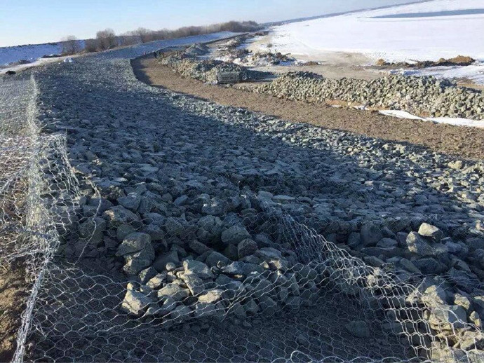 2適應不同的地基條件。由于構成綠濱墊防護體的鋼絲具有一定的抗拉強度,不易被拉斷,填充料之間又充滿了空隙,具有一定的適應變形的能力。當?shù)鼗闆r發(fā)生變化時,如發(fā)生不均勻沉降、地震等,箱內(nèi)填充料受箱籠的約束不會跑到箱籠外,而會自行調整形成新的平衡;又因箱籠系柔性結構,因此,防護工程外表可能會發(fā)生小的變異,但不會發(fā)生裂縫、網(wǎng)箱被拉斷從而造成防護體被破壞的現(xiàn)象。