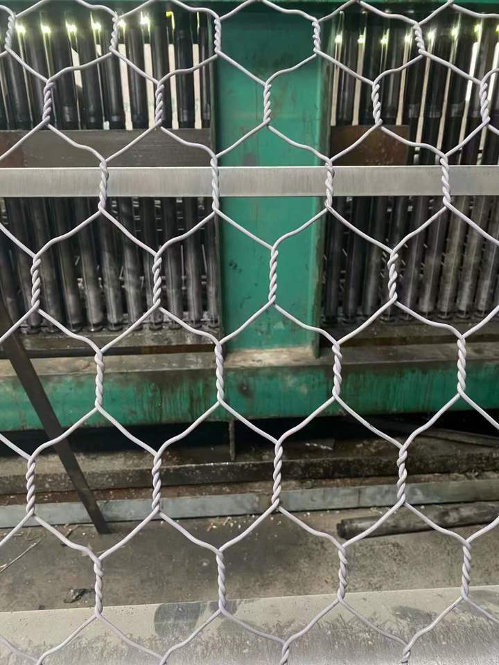 二、石籠網(wǎng)采用組裝方式,蓋板,邊板,端板,底板單獨生產(chǎn)組裝成網(wǎng)箱,各部分用螺旋鋼絲纏繞捆綁,網(wǎng)箱所有邊絲均采用粗絲加強石籠網(wǎng)的強度。