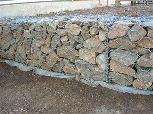 格賓網(wǎng)(格賓石籠)是由機(jī)編雙絞合六邊形金屬網(wǎng)面構(gòu)成的箱形結(jié)構(gòu),格賓網(wǎng)的鋼絲是由厚鍍鋅低碳鋼絲制造而成的。為了提高格賓網(wǎng)結(jié)構(gòu)的強(qiáng)度,所有的鋼絲網(wǎng)面板邊端都采用直徑更大的鋼絲,對(duì)格賓網(wǎng)的鋼絲可進(jìn)行厚鍍高爾凡處理來提高鋼絲的耐久性。當(dāng)用于土壤或水呈酸性的污染環(huán)境中時(shí),還可對(duì)鋼絲采用覆塑等措施進(jìn)行保護(hù)。格賓網(wǎng)是由間隔1m的隔板分成若干單元格,格賓石籠即在格賓網(wǎng)里填充石頭,形成了具有柔性,透水性及整體性的結(jié)構(gòu)。