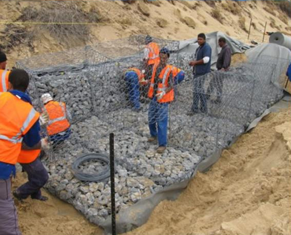 格賓網(wǎng)是金屬線材編織的角形網(wǎng)(六角網(wǎng))制成的網(wǎng)箱,使用的金屬線徑是根據(jù)六角形的大小而不同.如果是金屬鍍層的金屬線,則使用線徑為2.0mm到4.0mm的金屬線,如果是PVC包覆的金屬線編織的六角網(wǎng),則使用外徑為3.0mm到4.5mm的PVC(金屬)線.外框邊緣的線則使用比六角網(wǎng)線粗一號的線。低于50公分了統(tǒng)稱墊,或是護墊,高于50公分的稱為籠。