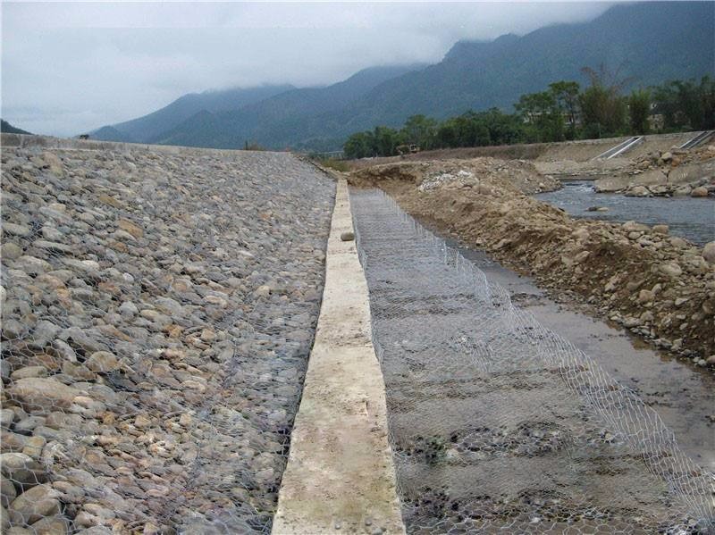 雷諾護(hù)墊是厚度在0.17-0.3m的網(wǎng)箱結(jié)構(gòu),在現(xiàn)場用于裝填石頭。主要用作河道、岸坡、路基邊坡護(hù)坡結(jié)構(gòu)。既可防止河岸遭水流、風(fēng)浪侵襲而破壞,又實(shí)現(xiàn)了水體與坡下土體間的自然對流交換功能,達(dá)到生態(tài)平衡。坡上植綠可增添景觀、綠化效果。