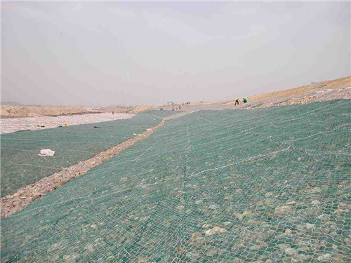 雷諾護(hù)墊是指由機(jī)編雙絞合六邊形金屬網(wǎng)面構(gòu)成的厚度遠(yuǎn)小于長度和寬度的墊形工程構(gòu)件,其中裝入塊石等填充料后連接成一體,成為主要用于水利堤防、岸坡、海曼等的防 沖刷結(jié)構(gòu),具有柔性、對(duì)地基適應(yīng)性的優(yōu)點(diǎn)。
