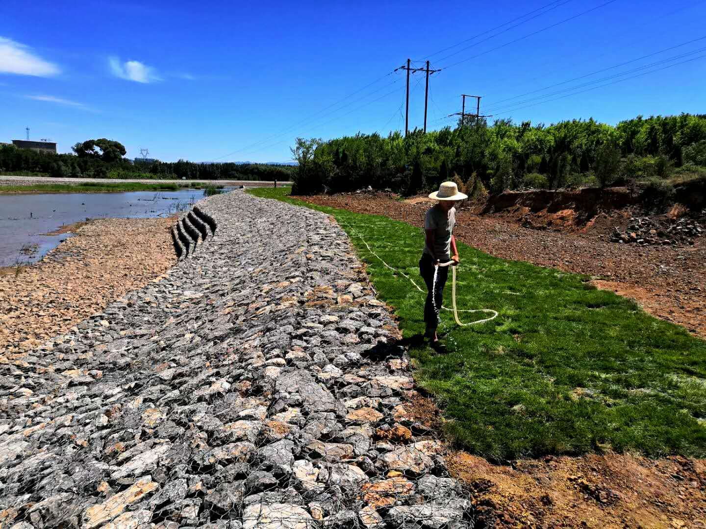 綠濱墊主要用于防洪防汛工程。起初人類(lèi)直接把石頭扔入河里,河流湍急,石頭容易被沖走,后來(lái)用裝著石頭的袋子扔入河中,袋子不太結(jié)實(shí),后來(lái)演變成為編制型的石籠網(wǎng)。