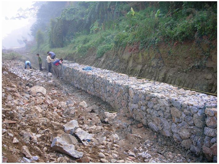 四、道路用石籠網(wǎng),有兩種,一種是保護道路的,例如,在道路的側(cè)邊,用石籠網(wǎng)箱壘砌一道石籠網(wǎng)的堤壩,用于抵擋洪水保護道路;在路基的側(cè)面,用石籠網(wǎng)箱壘砌的加固路基的石籠網(wǎng)。另一種是建設(shè)道路過程中,把重型六角網(wǎng)放在路基或者澆筑水泥路面時,作為筋網(wǎng),放在水泥路面中,這樣可以防止路面開裂。