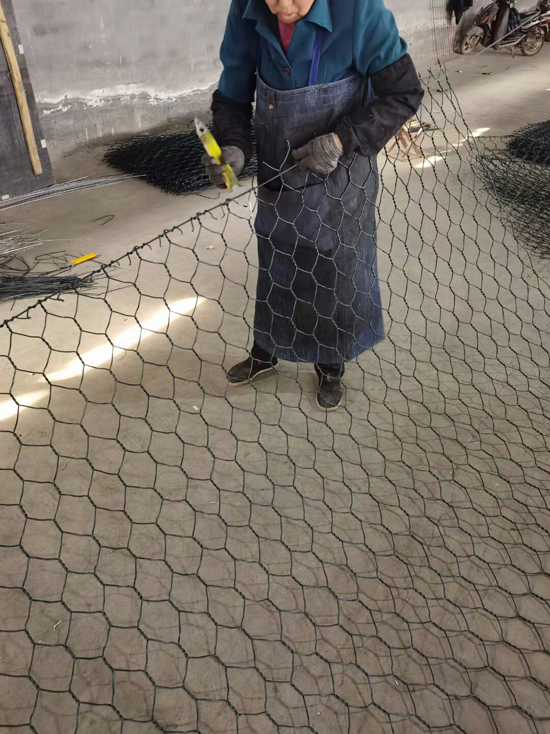 如果是金屬鍍層的金屬線六角形,則使用線徑為2.0mm到4.0mm的金屬線,如果是PVC包覆的金屬線編織的六角網,則使用外徑為3.0mm到4.0mm的PVC(金屬)線.外框邊緣的線則使用比六角網線粗一號的線。