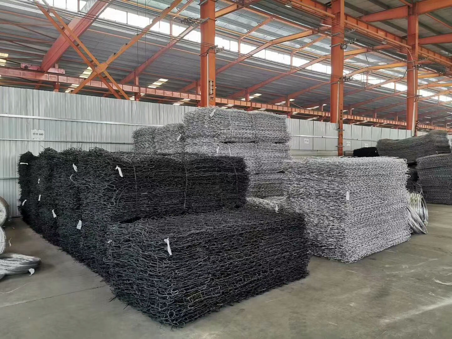 ??3、當在已完成的底層網上面安裝石籠網箱時,應用綁線沿新裝石籠網箱下部邊框將其固定在底層的石籠網箱上,同一層相鄰的石籠網箱也應用綁線相互系牢,使石籠網箱連成一體。
