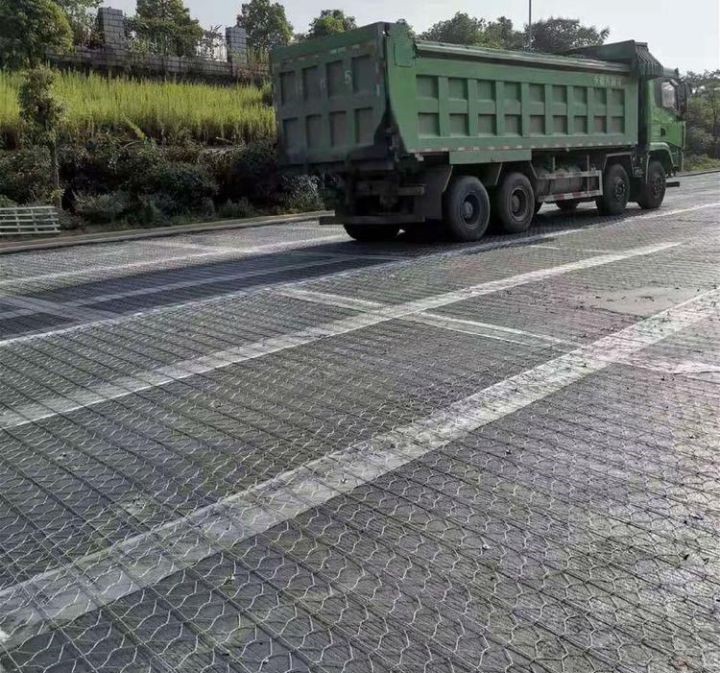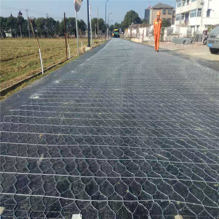 路面加筋網(wǎng)材質(zhì):熱鍍鋅鐵絲、鋅鋁合金絲