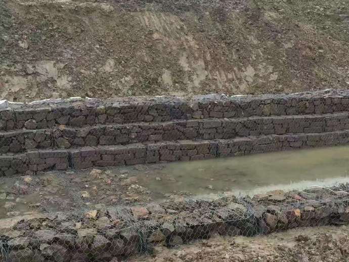 箱型石籠由大規(guī)格六角網(wǎng)聯(lián)結(jié)而成,施工中只需將石塊裝入籠中封口即可。