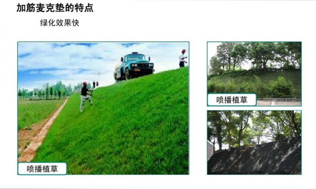 1、環(huán)保理念:加筋麥克墊有一定的縫隙,這樣在網(wǎng)墊的表面或者空隙中,拋灑塵土,這樣就給植物提供了有利的生長條件,配以適當(dāng)?shù)姆N子,就可以綠化了。