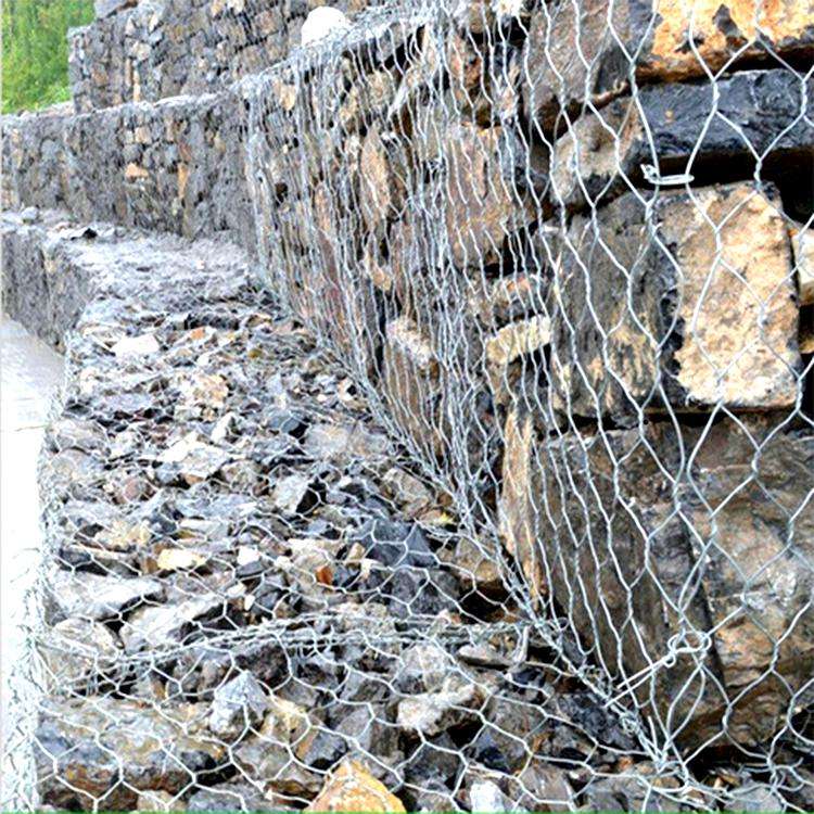 石籠網(wǎng)是由高抗腐蝕、高強(qiáng)度、具有延展性的低碳鋼絲或者包覆PVC的以上鋼絲使用機(jī)械編織而成,根據(jù)ASTM A 975和EN10223標(biāo)準(zhǔn),所使用的低碳鋼絲直徑根據(jù)工程設(shè)計(jì)要求而不同。一般介于2.0-4.0mm之間,鋼絲的抗拉強(qiáng)度不少于38kg/m2,金屬鍍層重量一般高于245g/m2石籠網(wǎng)片的邊緣線直徑一般要大于網(wǎng)線直徑。其雙線絞合部分的長度不得小于50mm.以保證絞合部分鋼絲的金屬鍍層和PVC鍍層不受破壞。