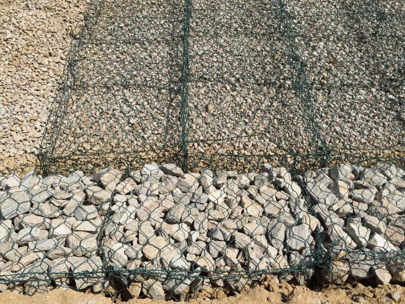 綠格網(wǎng)又稱(chēng)“格賓網(wǎng)”、“石籠網(wǎng)”,由各種網(wǎng)孔規(guī)格的綠格網(wǎng)片按照ASTMA975-97規(guī)范組裝而成,工程現(xiàn)成填充石料組裝形成柔性的、透水的、整體的支擋結(jié)構(gòu),常用于生態(tài)防護(hù)工程。該結(jié)構(gòu)采用高熱鍍鋅鋼絲或者10%鋅鋁合金鋼絲經(jīng)過(guò)雙線絞合編織而成的,其雙線絞合部分的長(zhǎng)度不能低于45mm,以保證絞合部分的防腐性能不被破壞。因?yàn)榄h(huán)境比較惡劣,污染比較嚴(yán)重,所以鋼絲的表面涂塑(包PVC或者PE)增強(qiáng)鋼絲的抗腐蝕性能。